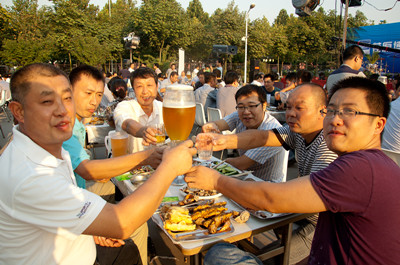 穿插其間的互動(dòng)游戲――喝啤酒比賽,員工們爭(zhēng)先恐后的參加,最后“啤酒王”的桂冠由公司采購(gòu)部員工陳永泰獲得。為整個(gè)晚會(huì)增添了歡樂的氣氛。