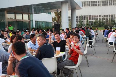 17:30分, “第四屆員工納涼晚會(huì)”正式開始。首先是員工聚餐。近400名員工,伴著歡快的樂曲聲,推杯換盞,大快朵頤。公司總經(jīng)理志賀進(jìn)、常務(wù)副總經(jīng)理王正軍等公司領(lǐng)導(dǎo)走入員工中,與員工們親切交談,敬酒祝愿,整個(gè)會(huì)場(chǎng)洋溢著一張張歡樂的笑臉。