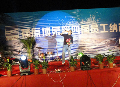 18:30分,晚會(huì)節(jié)目正式開始,首先在晨曦樂隊(duì)激情飛揚(yáng)的搖滾歌曲聲中拉開了晚會(huì)的序幕。晚會(huì)節(jié)目有獨(dú)唱、小合唱、舞蹈等等,演員們的精彩表演,博得了員工們陣陣掌聲和喝彩。特別是生產(chǎn)部門女職工排練的舞蹈,動(dòng)感十足,展示了女員工的多姿多彩的精神風(fēng)貌。常務(wù)副總經(jīng)理王正軍的一曲豪邁的《紅旗飄飄》,抒發(fā)了荏原博泵員工的愛國(guó)情懷;北京事務(wù)所的王信東部長(zhǎng)帶來了抒情歌曲《別問》;王虹權(quán)、袁磊、趙喜鵬、周新菊、肖旭、竇群、蔣祺、張雷雷、徐道義、董旭光等員工先后表演了自己準(zhǔn)備的節(jié)目;職工子女表演的拉丁舞更是把晚會(huì)的氣氛推向高潮。