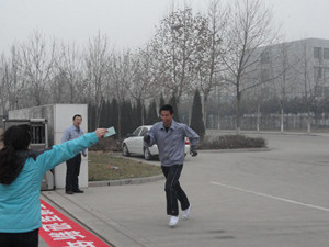 下午4點,隨著副總經(jīng)理王興春手中的發(fā)令槍響,員工們爭先恐后的向前沖去。沿著開發(fā)區(qū)北路望去,身著工作服的員工如一條長龍,蜿蜒向前。迎著凜冽的寒風(fēng),大家你追我趕,熱情高漲。女員工們也毫不示弱,巾幗不讓須眉。最終,3000米的路程,質(zhì)量部的張洪云以19′10″,奪得女子組第一名,第二名是生產(chǎn)部的胡俊,第三名是公司食堂的萬寶瑋;男子組第一名是營業(yè)部的楊大帥,成績是13′50″,他也是我公司蟬聯(lián)三屆的長跑冠軍,第二名是生產(chǎn)部的翟海波,第三名是副總經(jīng)理姜作棟。