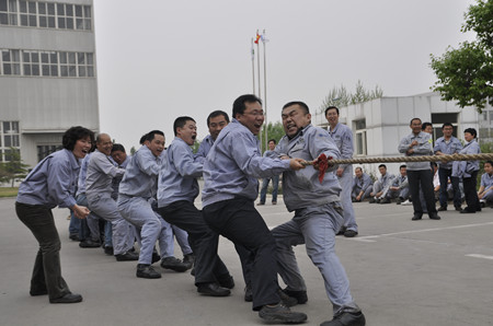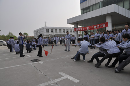 新聞中心為慶祝五?一勞動(dòng)節(jié),公司工會(huì)舉辦“第五屆員工拔河比賽”。4月30日下午,在辦公樓前200多名員工參加的拔河比賽正緊張進(jìn)行。參賽隊(duì)伍共有八支男隊(duì)、四支女隊(duì)。經(jīng)過緊張的角逐,焊接物流隊(duì)以絕對的優(yōu)勢力拔頭籌獲得男子冠軍,生產(chǎn)裝配隊(duì)獲得男子亞軍;生產(chǎn)部女隊(duì)獲女子冠軍。
