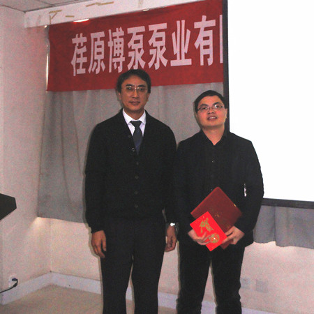 最后,對(duì)2012年度優(yōu)秀業(yè)務(wù)員――高文旭、優(yōu)秀技術(shù)工程師――夏紅軍進(jìn)行了表彰,總經(jīng)理志賀進(jìn)先生親自為他們頒發(fā)了證書(shū)及獎(jiǎng)金。