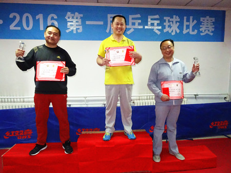 經過緊張、激烈的角逐,獲得男子團體比賽的冠軍隊是:機加工二隊;亞軍:質量采購隊;季軍:管理隊。獲得男子單打前六名的隊員是:冠軍:李金勇;亞軍:張鑫;季軍:劉增忠;第四名:丁業(yè)旋;第五名:趙汝慶;第六名:聶紅兵。