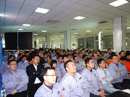 接下來,王總對公司各系統(tǒng)的工作做了詳細(xì)的分析:營業(yè)方面,訂貨結(jié)構(gòu)有所改善。生產(chǎn)方面:發(fā)貨數(shù)量創(chuàng)歷史新高;生產(chǎn)效率提高、費(fèi)用控制也是生產(chǎn)系統(tǒng)的一大亮點(diǎn)。在采購工作中,各個部門的溝通和配合有很大的提高,降低費(fèi)用成效顯著。焊接工場成立一年半來,成長迅速,超出公司預(yù)期;在焊接噸位、員工技能提高、工藝改善等方面有了很大的發(fā)展。研發(fā)方面:導(dǎo)入PDM管理軟件,出圖質(zhì)量提高,出圖及時率達(dá)到98%以上,圖紙更改率降低。通過與富津工廠及總部的溝通與支持,各項(xiàng)開發(fā)課題進(jìn)展順利??梢宰院赖恼f:目前我公司中開泵性能的競爭力已經(jīng)在國內(nèi)不輸任何一家競爭對手,為下一步產(chǎn)品拓展打下了基礎(chǔ)。管理系統(tǒng)方面:PDM管理軟件的應(yīng)用,ERP系統(tǒng)升級,公司會議系統(tǒng)的開發(fā)及各種表單的開發(fā)、電腦的更換,為部門效率的提高打下了基礎(chǔ)。辦公樓的改造、5S管理工作的強(qiáng)化等等使公司辦公面貌煥然一新。通過各方面工作的磨練及內(nèi)外培訓(xùn)工作的加強(qiáng),員工的技能、思維方式、行為方式、解決問題的能力等有了很大程度的提高。