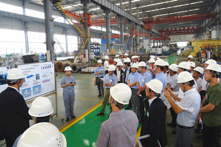 這次生產(chǎn)革新大會的目的是加速推進荏原集團內(nèi)部各工廠的生產(chǎn)革新活動的開展,目標是生產(chǎn)周期減半、庫存減半、最大限度地提高生產(chǎn)效率,降低成本,增強企業(yè)競爭力。通過生產(chǎn)革新活動,達到從現(xiàn)場改善提升到管理系統(tǒng)改善、人的改善的目標,使“產(chǎn)品制作”流程優(yōu)化。在這次大會上,公司總經(jīng)理王正軍向與會代表介紹了EMZ的經(jīng)營發(fā)展狀況,并帶領與會人員參觀工廠,詳細介紹了生產(chǎn)革新的進展情況。